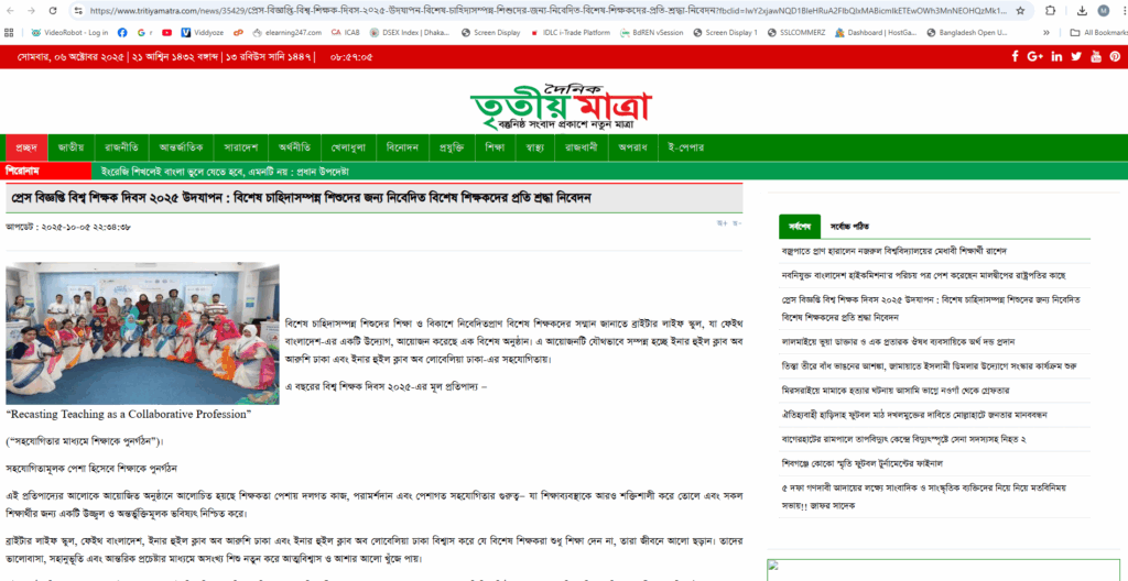 উদ্দেশ্য:বিশ্ব শিক্ষক দিবস ২০২৫ উপলক্ষে বিশেষ শিক্ষকদের সম্মাননা প্রদান ও সহযোগিতামূলক শিক্ষার মূল্যবোধ প্রচার।