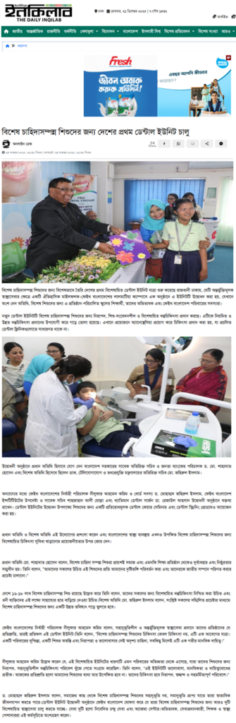 বিশেষ চাহিদাসম্পন্ন শিশুদের জন্য দেশের প্রথম ডেন্টাল ইউনিট চালু